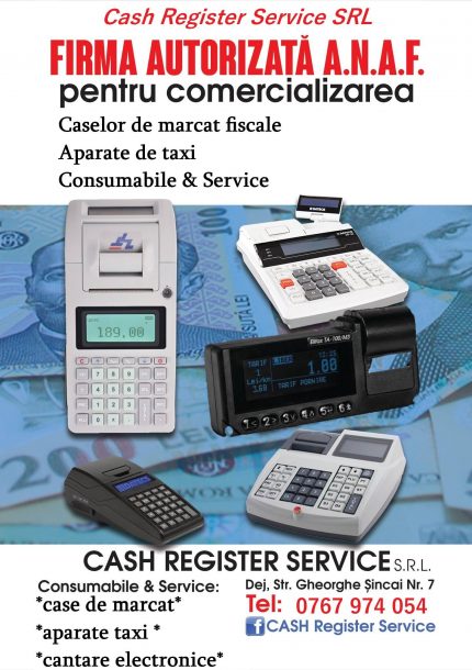 O solutie rapida pentru a schimba casa de marcat sau aparatul fiscal de taxi o ofera cei de la Cash Register Service SRL Dej. Ii gasesti pe strada Gheorghe Sincai, nr 7. Firma este autorizata sa vanda, sa fiscalizeze si sa ofere servicii de service caselor de marcat cu jurnal electronic, aparatelor fiscale de taxi, cantarelor electronice.