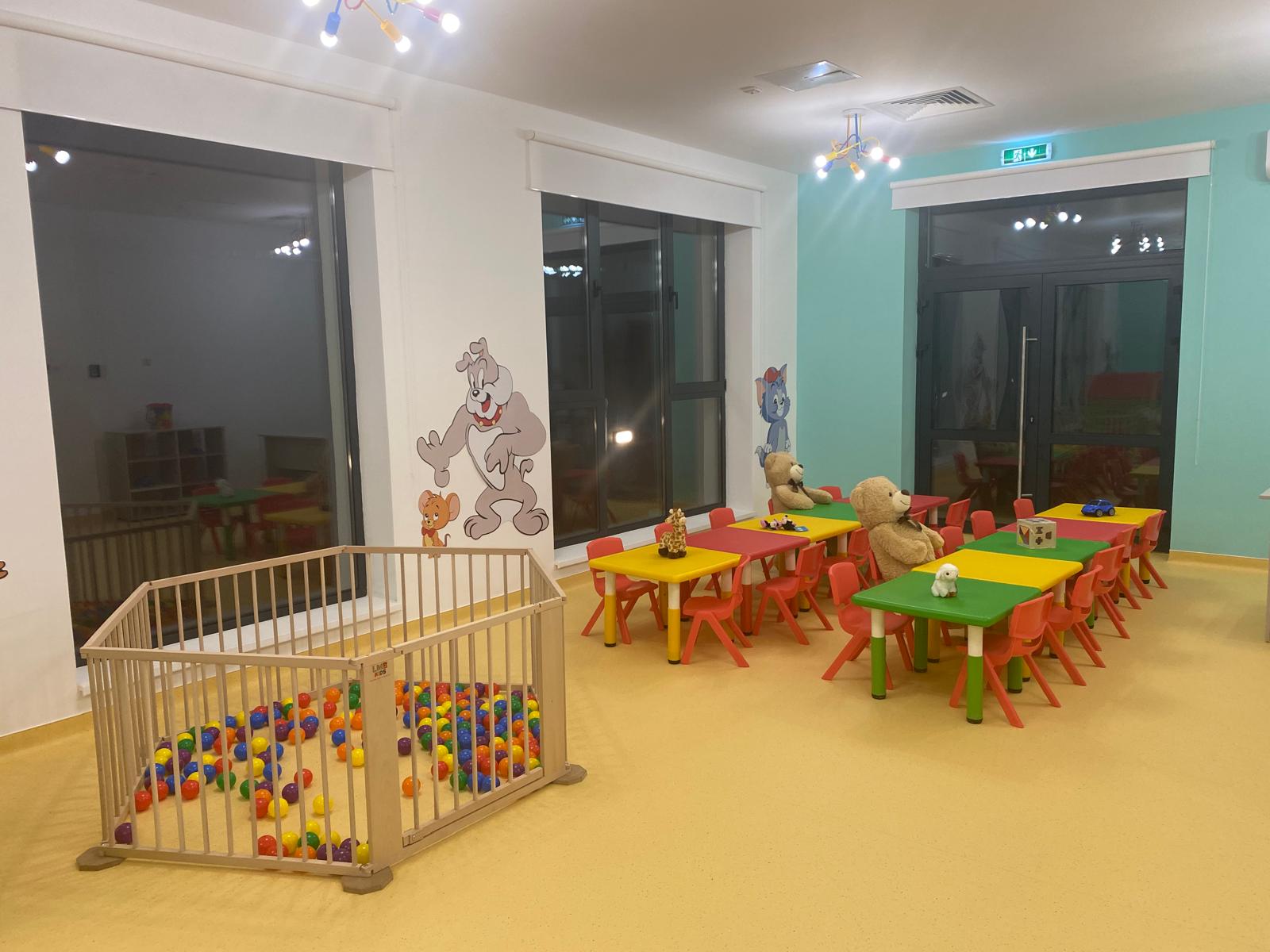 - Zona destinată copiilor, unde au fost amenajate patru dormitoare, două camere de joacă, o sală multifuncțională pregătită inclusiv pentru activități multimedia, vestiare, grupuri sanitare, spații de depozitare și un loc de joacă în aer liber;